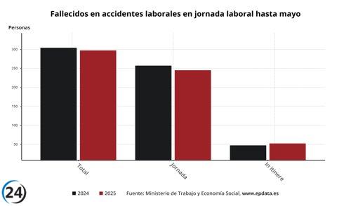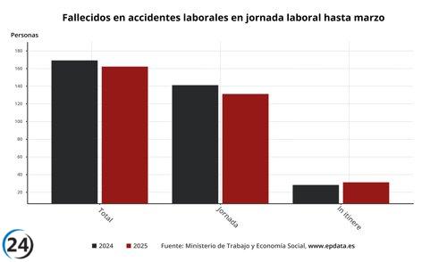 La cifra de fallecidos en accidentes laborales disminuye en 106 trabajadores, alcanzando los 664 hasta noviembre.