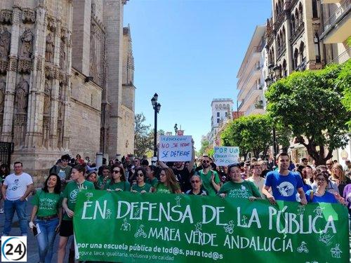 Manifestantes defienden educación pública y denuncian privatizaciones en Sevilla.