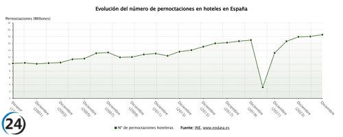 Aumento del 2,1% en estancias hoteleras en junio, alcanzando casi 39 millones.