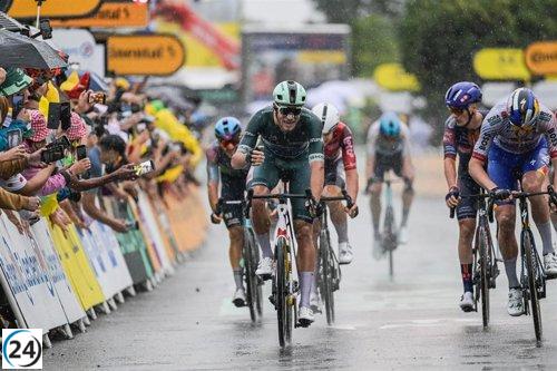Kaden Groves logra su primer triunfo en el Tour de Francia bajo aguaceros.