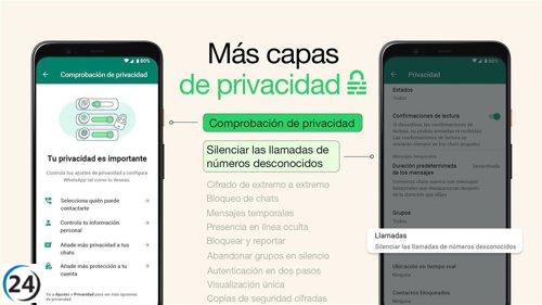 WhatsApp suma nuevas funciones: silenciar llamadas de desconocidos y comprobación rápida de privacidad.